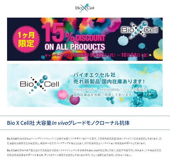 【Bio X Cell社】全商品対象!通常価格15%値下げキャンペーン! -