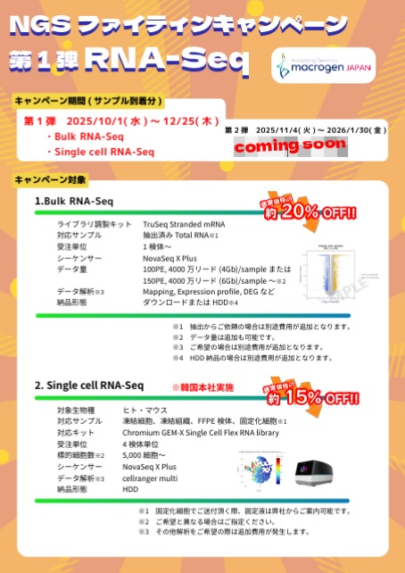 【受託キャンペーン】RNAシーケンス スペシャルキャンペーン