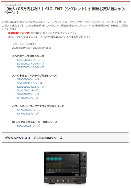 【最大105万円お得!】SIGLENT(シグレント)計測器お買い得キャンペーン! -