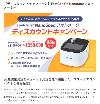 【ディスカウントキャンペーン】FastGene™ NanoSpecフォトメーター