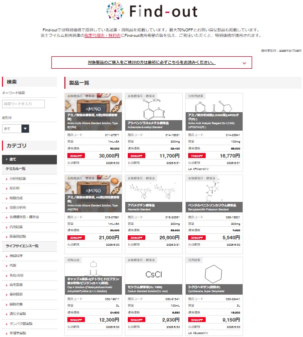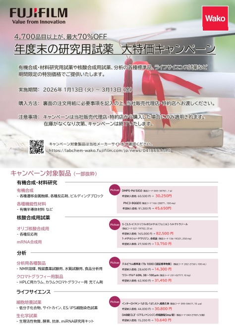 試薬製品の最小サイズ製品を希望小売価格の40%OFFでご購入いただけます
