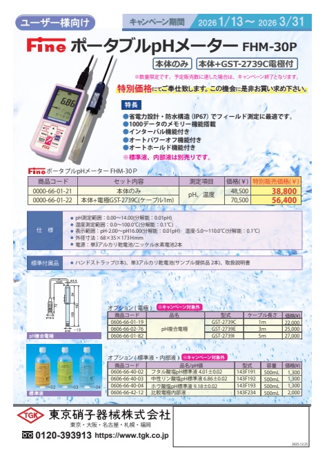 Fine ポータブルpHメーター(FHM-30P)台数限定キャンペーン -