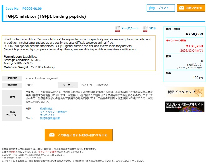 ペプチグロース社TGFβ1阻害ペプチド キャンペーン実施中! -
