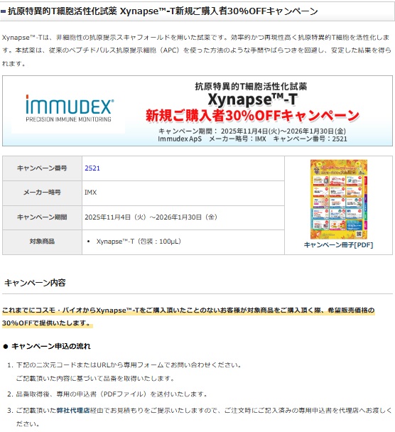 抗原特異的T細胞活性化試薬 Xynapse™-T新規ご購入者30%OFFキャンペーン