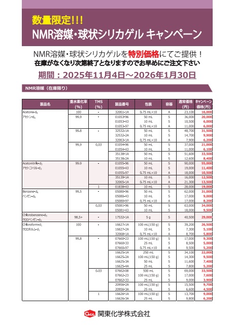 【数量限定!!】NMR用重水素化合物・球状シリカゲル キャンペーン