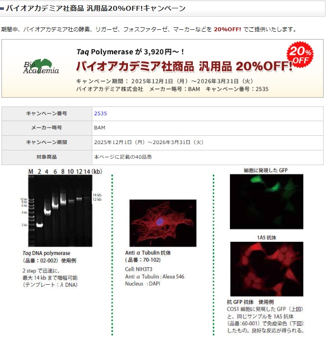 バイオアカデミア社商品 汎用品20%OFF!キャンペーン -