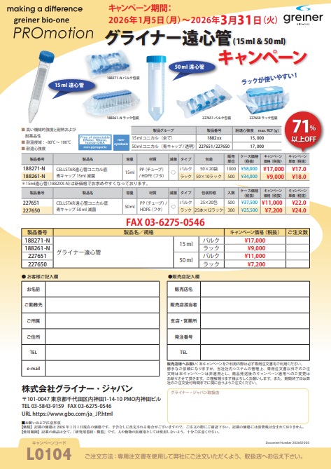 グライナーの CELLSTAR遠心管 キャンペーン【L0104】 -