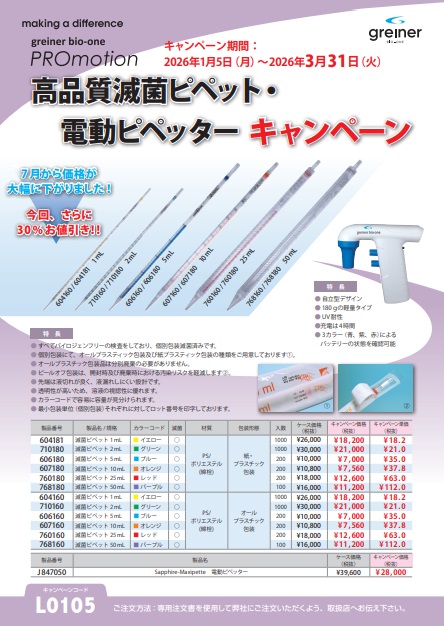 高品質滅菌ピペット 及び電動ピペッター キャンペーン【L0105】 -