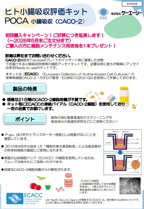 ヒト小腸吸収評価キット POCA小腸吸収(CACO-2)初回購入キャンペーン -