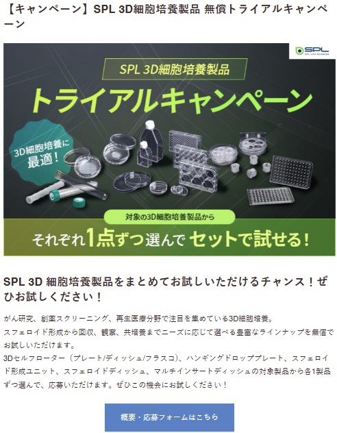 SPL 3D細胞培養製品 無償トライアルキャンペーン -