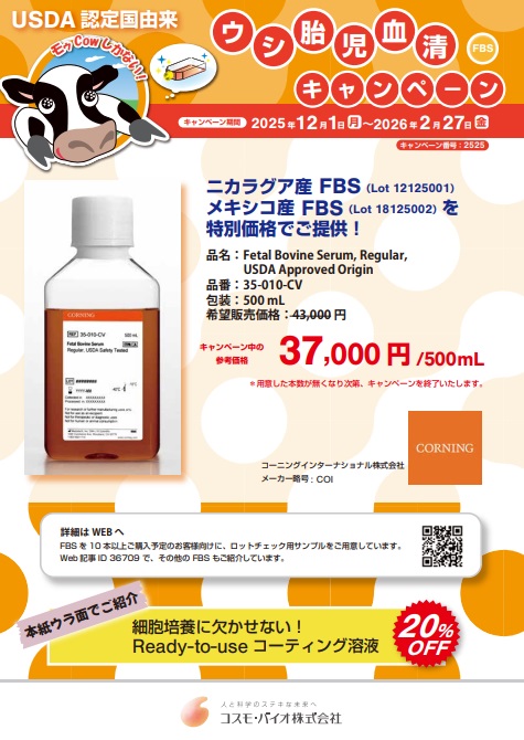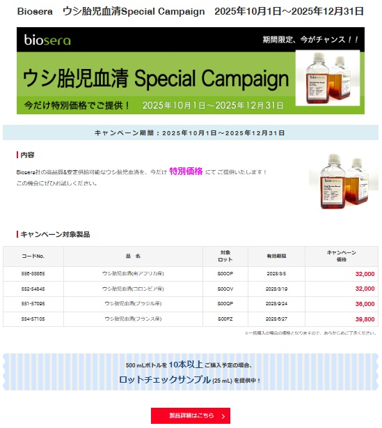 ウシ胎児血清 (FBS) 特別価格キャンペーン -